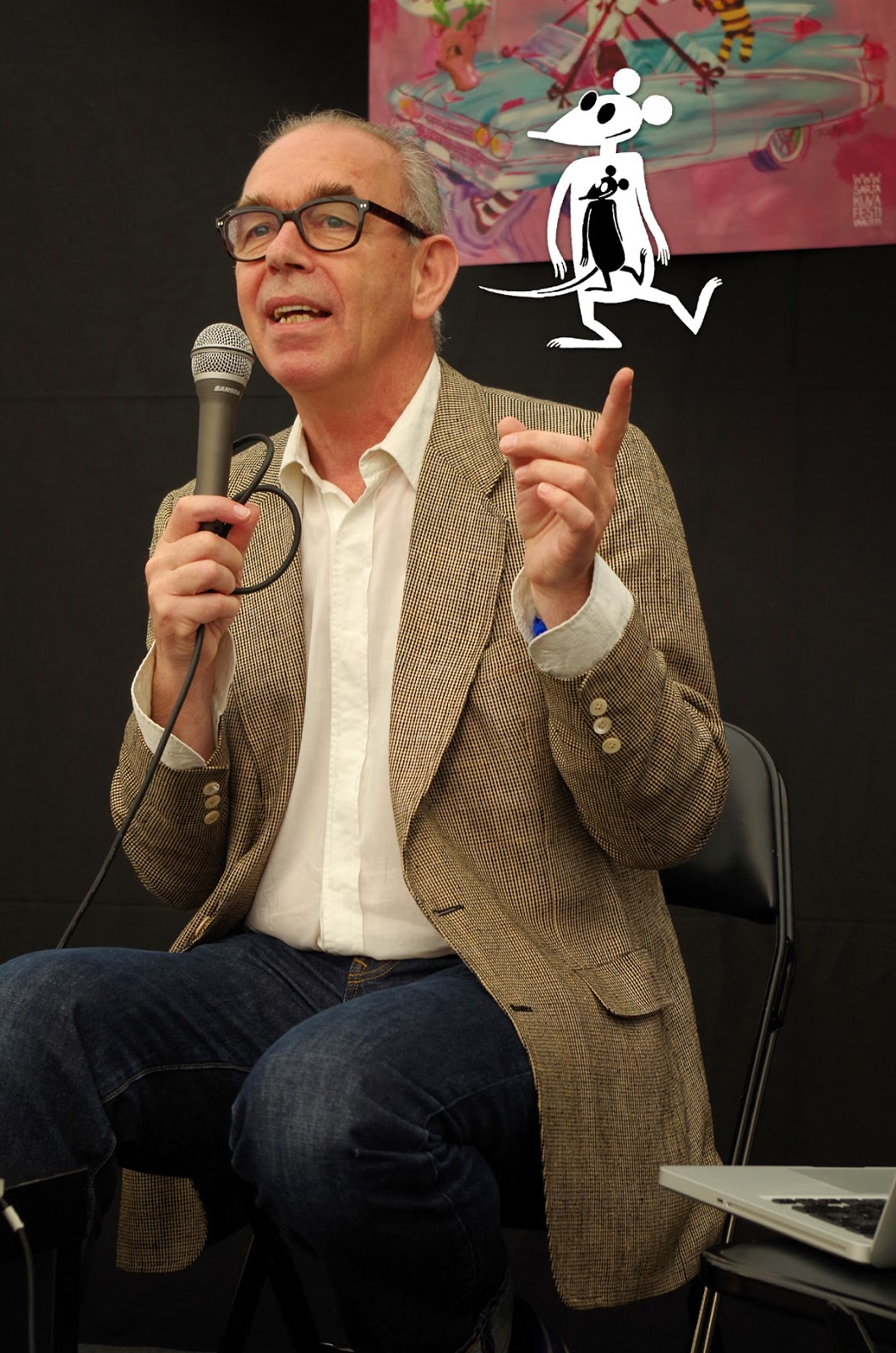 Juhani Tolvanen ja Joost Swarte otsa rypyssä pohtimassa ligne clairen merkitystä sarjakuvataiteelle. Selkeä ilmaisu vapauttaa kerronnan...