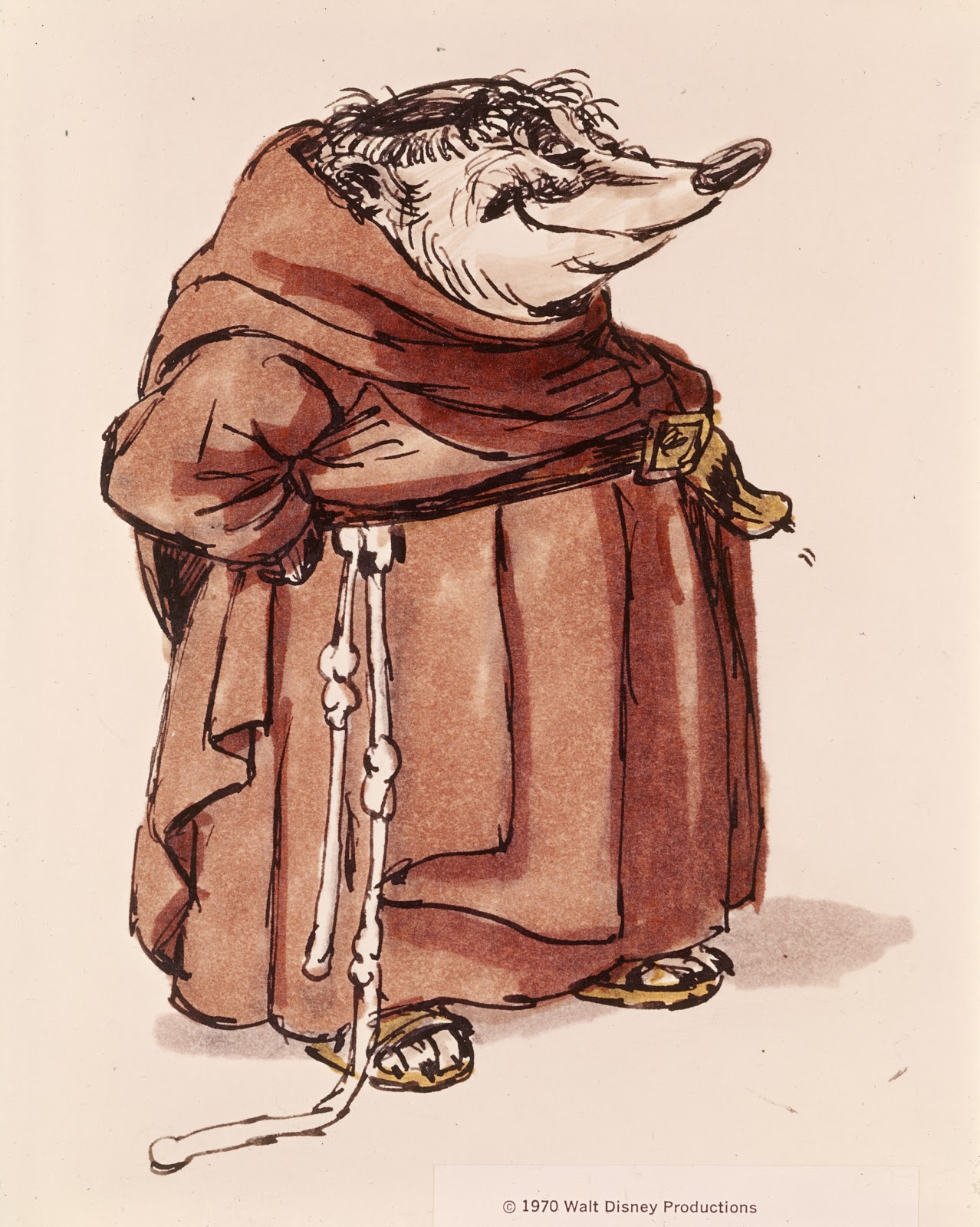 Friar Tuck is great as a badger, but he was also great as a pig, as I had originally planned. Then I thought the symbol of a pig might be offensive to the Church, so we changed him.