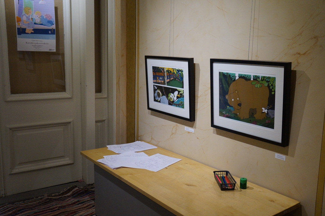 Tänään avautunut toinen näyttely on perinteisempi kirjastonäyttely, jossa esitellään eläinsarjakuvia lainaajien inspiraatioksi.