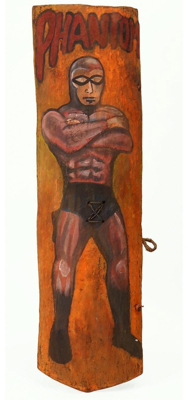Papua-Uudessa-Guineassa Mustanaamio on oikeasti "mies, joka ei voi kuolla". Kuva maalataan sotakilpiin, joissa The Phantom on jonkinlainen suojeleva toteemihahmo.