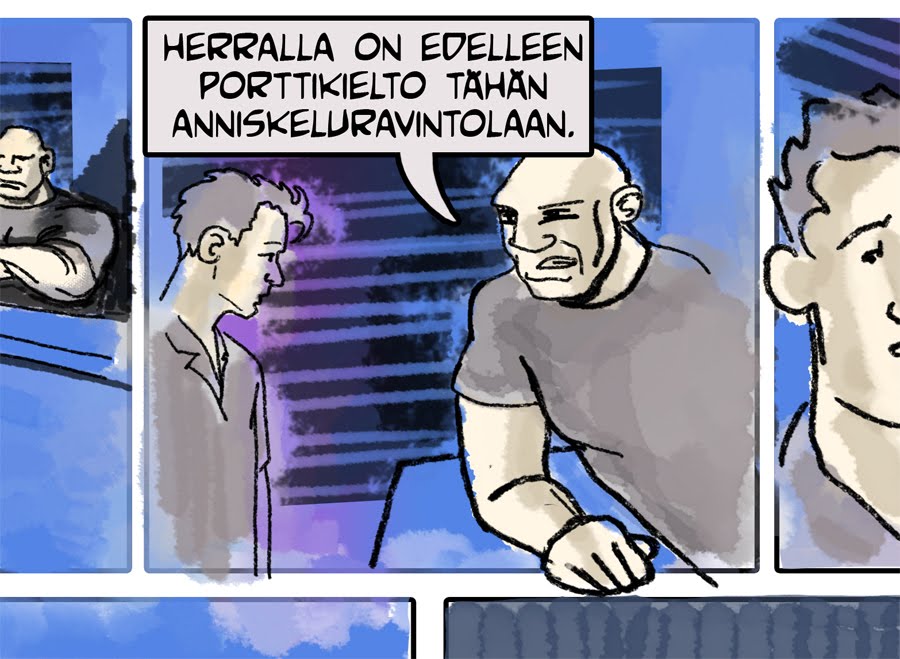 Laitetaan nyt tämä päivän piirros tänne muhimaan, vaikka onkin ehkä lähempänä valmista kuin luonnosta.
