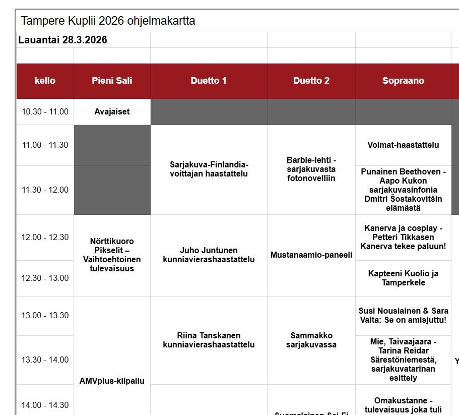 Näitä miettien Kvaak toivottaa niin järjestäjille, sarjakuvantekijöille kuin -harrastajille sopuisaa ja positiivista sarjakuvaviikonloppua.